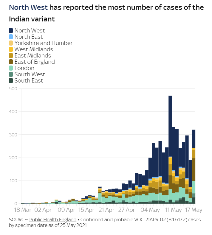英国西北部成为印度变种增长最快区域 | 信息来源PHE