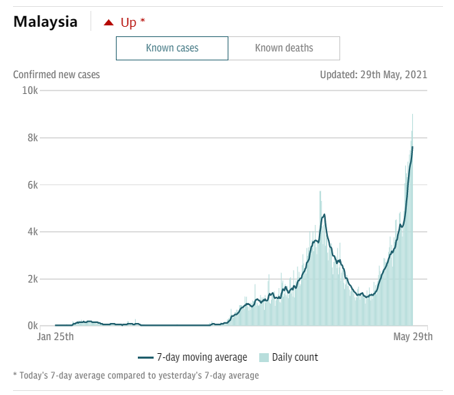 截止至2021年5月30日(周日)英国时间09:00,累计检测结果量177,486,846次(待更新);累计确诊4,484,056例(+3,240);累计病亡127,781例(+6)。