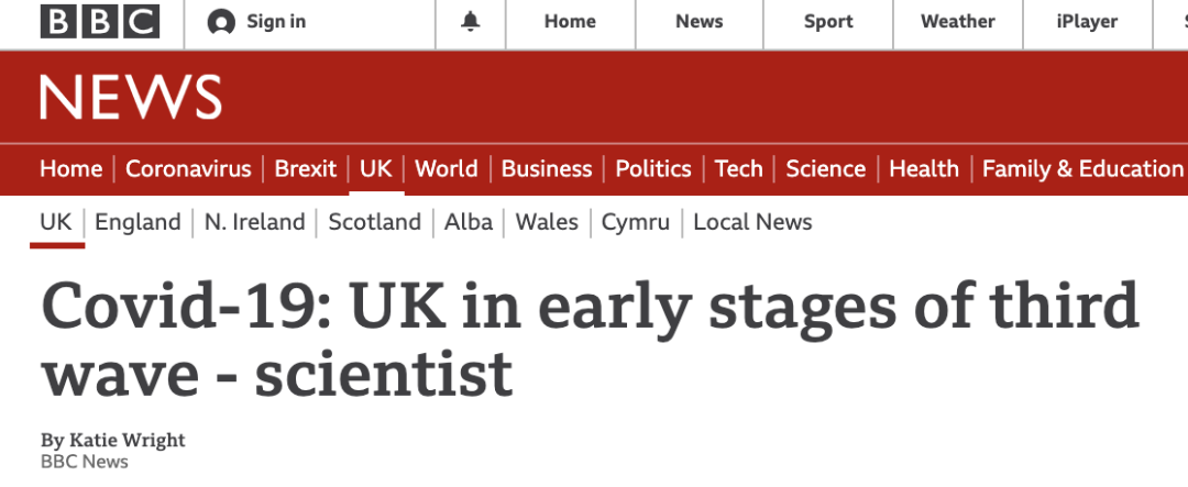 5月31日(周一),英国政府科学家表示:有迹象表明,英国正处于第三波新冠疫情传播感染的早期阶段。