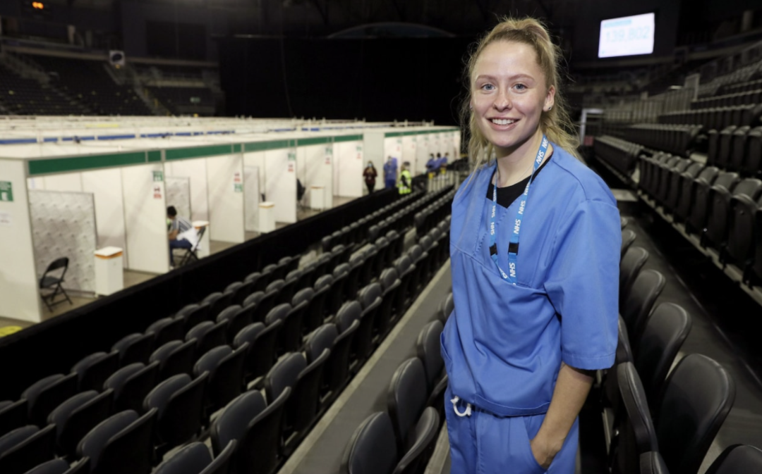 伦敦西北部的首席护士Pippa Nightingale鼓励人们在银行假期的好天气里抽出一些时间来看看Twickenham橄榄球体育场的疫苗接种活动。