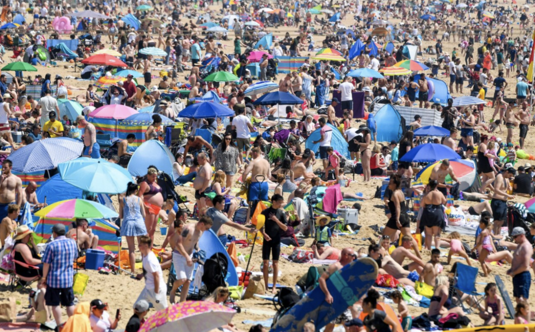 5月31日(周一)是5月17日第三步解封以来首个没有旅行限制的银行假日,更是英国2021年目前最热的一天,各地的人们利用小长假最后一天出行游玩,涌向公园和海滩。