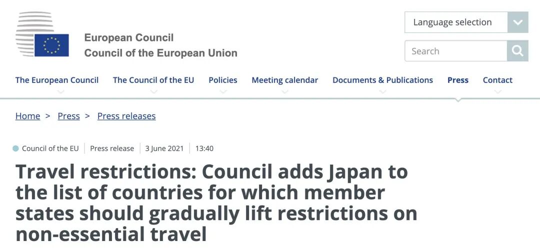 在对进入欧盟的非必要旅行临时限制的建议进行审查后,欧盟理事会更新了应取消旅行限制的国家名单。