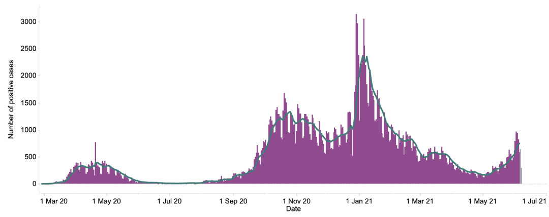 英国日增确诊案例趋势图