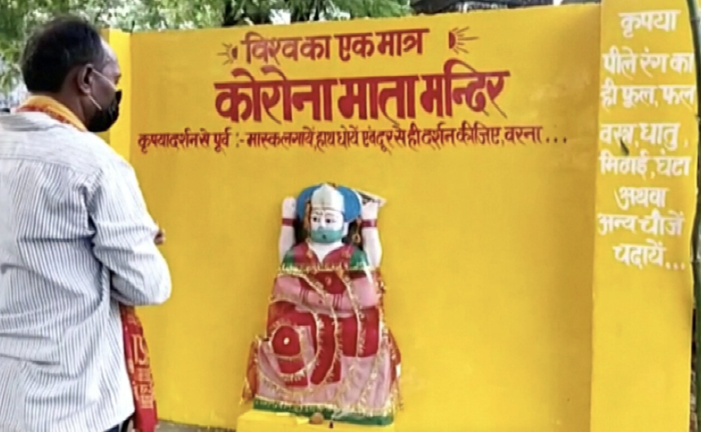 据悉在印度北部多座村庄,印度村民们为新冠女神设立了各自的神庙,并祈祷希望女神的能力可以干预并最终驱赶病毒。