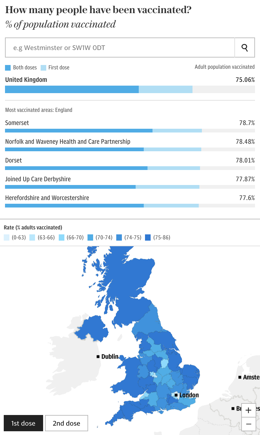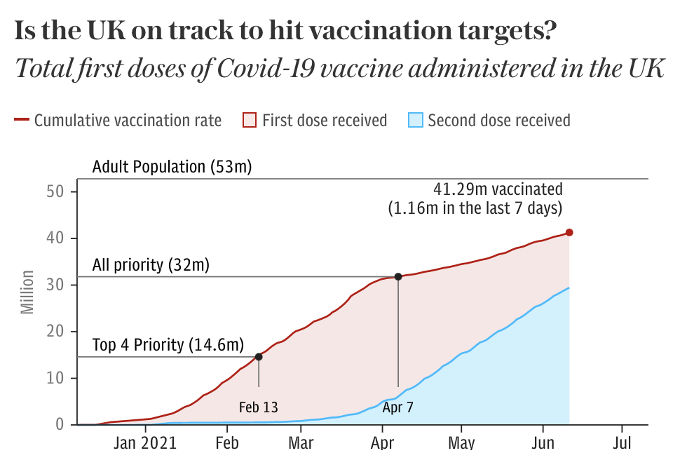 截至6月12日(周六),英国已经有超过75%的成年人完成首剂疫苗的接种。