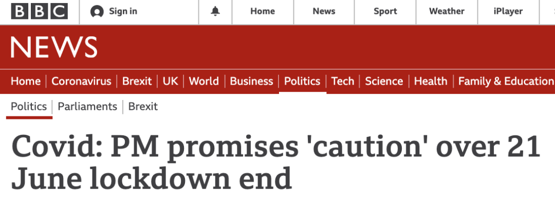 6月12日(周六),英国首相Boris Johnson鲍里斯表示:英国政府在决定是否在6月21日按时结束英格兰的所有新冠限制时,一定秉持“谨慎行事”的原则。