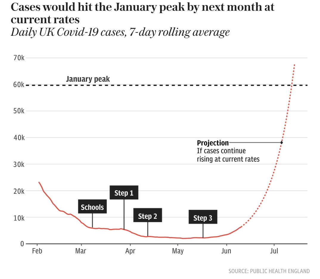 如果按时解封,预计英国将会在7月达到今年1月的超级高峰