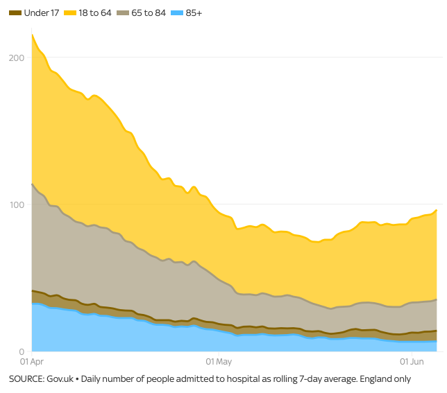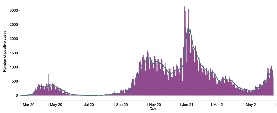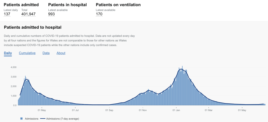 而医院每天的新病人数量上升了30%,从5月中旬的75人上升到6月初的100人。主要是由在印度发现的Delta变体(B.1.617.2)的传播引起的。该数据是否可能通过解封审核条件并不确定。