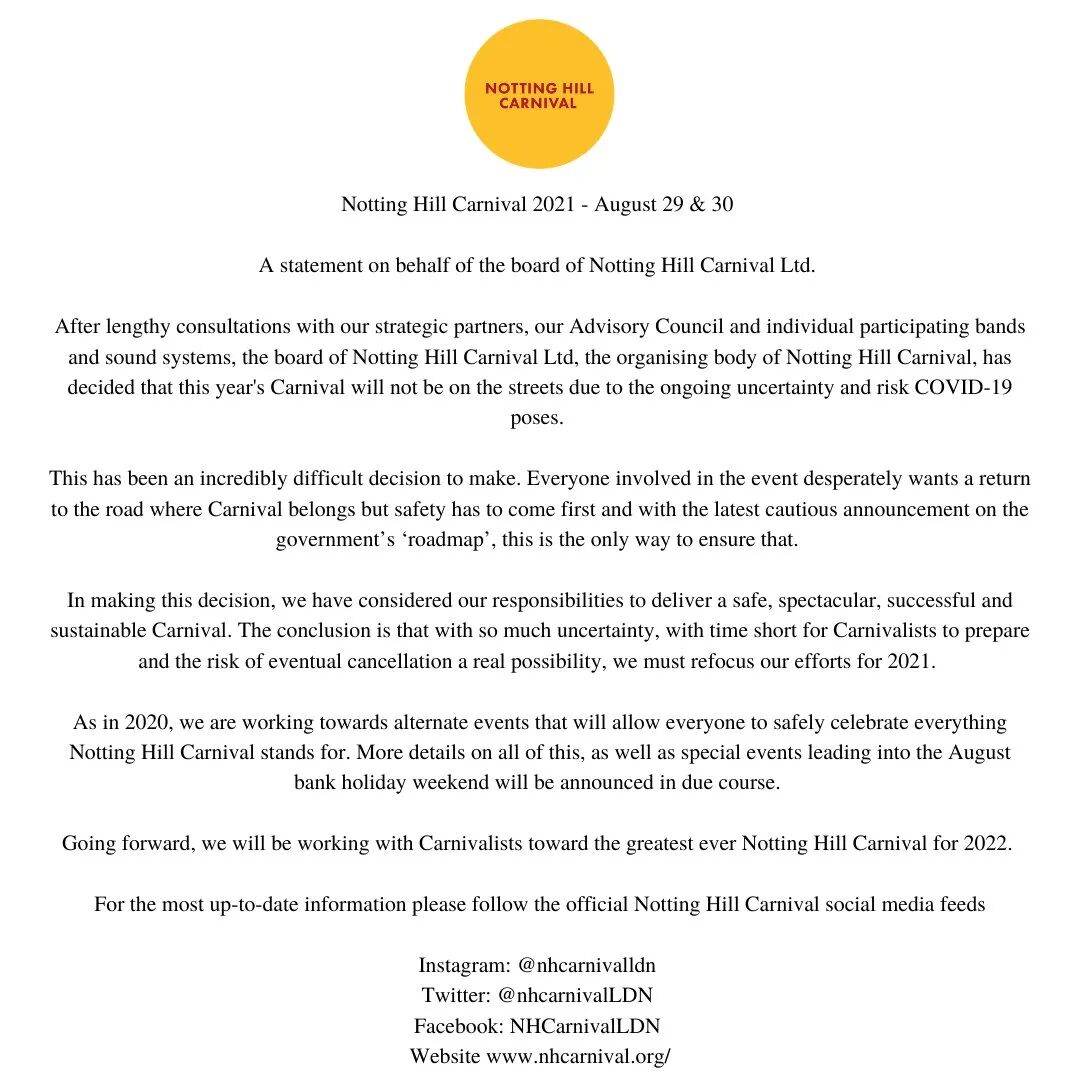 与此同时,今日诺丁山夏日狂欢节官方正式确定:今年8月底的狂欢节正式取消——这已经是疫情以来连续第二年取消该庆典了。