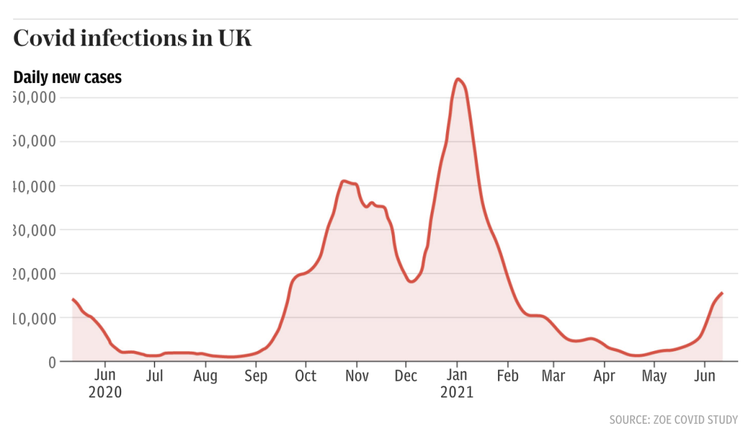 6月18日(周五),最新数据显示,最近的新冠疫情已经开始趋于平缓,专家表示:英国正在经历一个小浪潮,预计在两周内抵达峰值。