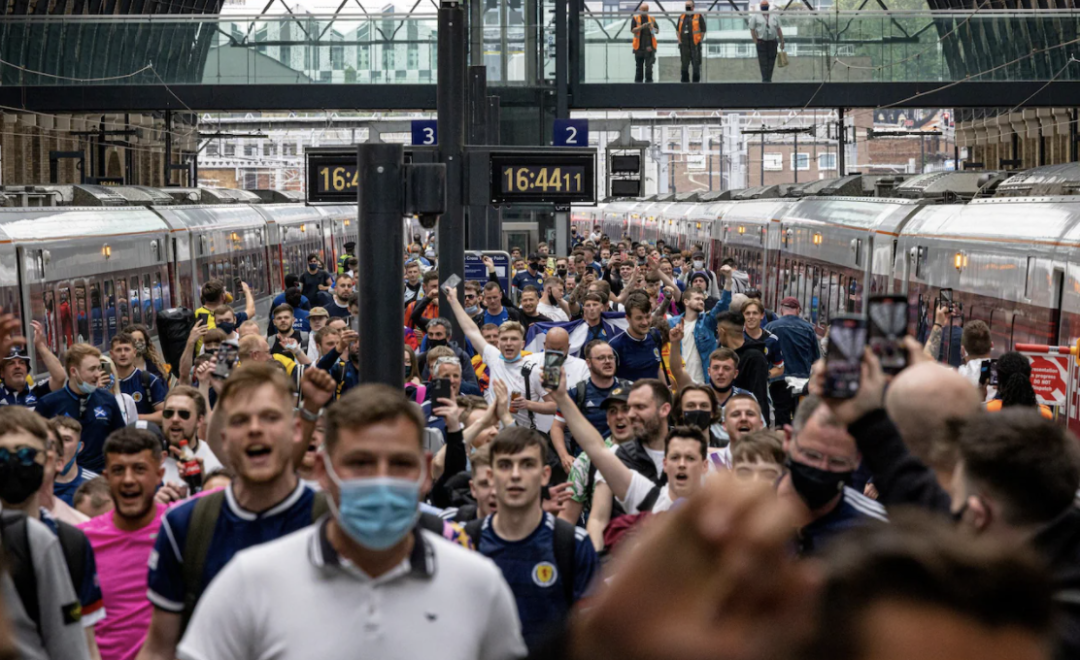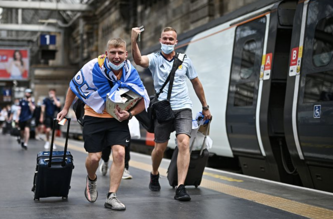 据称,在今晚苏格兰与英格兰的2020年欧洲杯比赛之前,约有2万名球迷空降伦敦。
