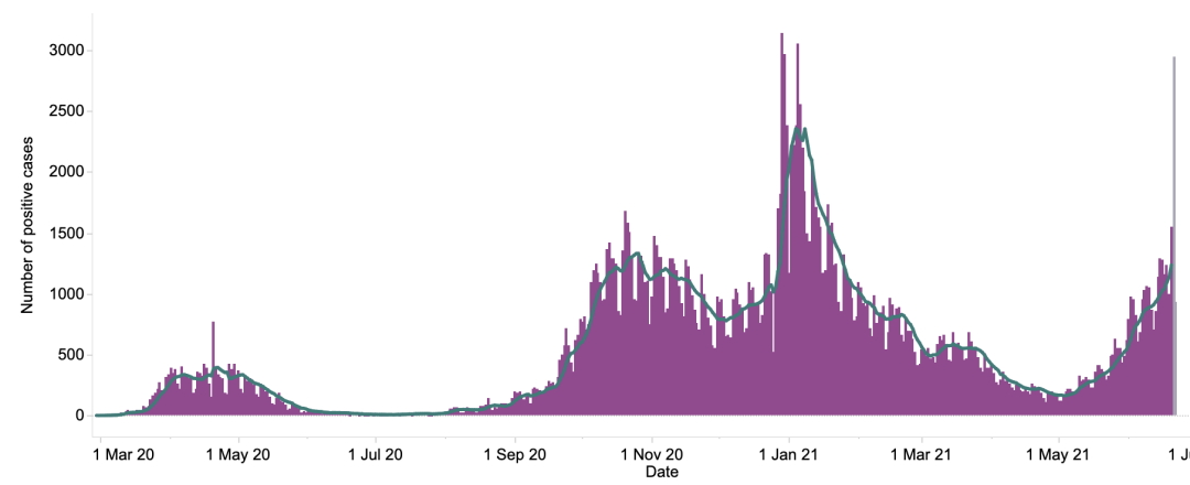 地区方面:威尔士的疫苗推广工作比英国其他地区更快——18岁以上的人几乎都已经接种了第一剂疫苗。