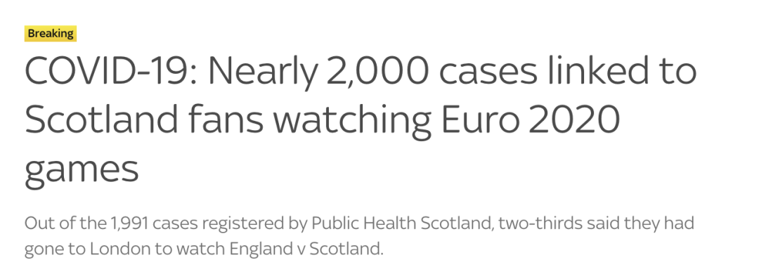 苏格兰目前成为了英国疫情最严重的地区之一,和欧洲杯观赛有非常直接的关系。