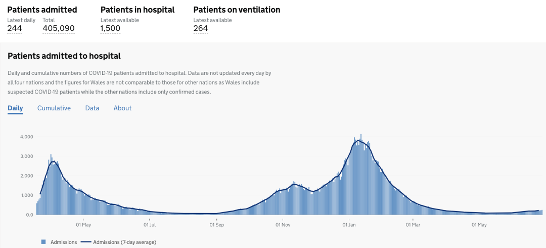 然而,新增的死亡人数仍仅为14例,这也可以侧面说明英国成功推广的疫苗接种计划已经打破了确诊、住院和死亡患者之间的联系。