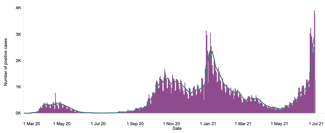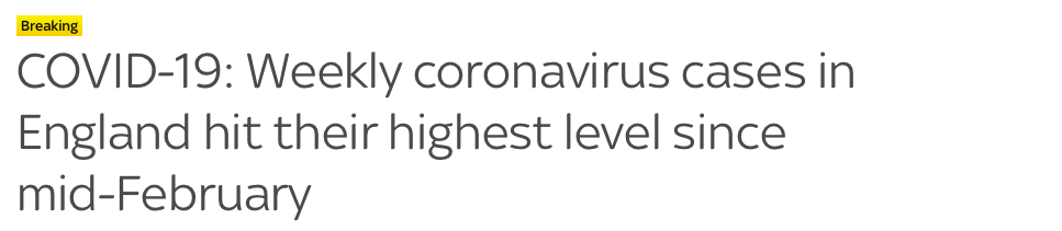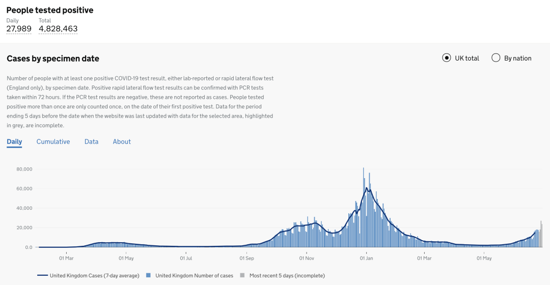 根据最新数据,英格兰每周记录的新增新冠病例数量已经达到了自2月17日以来的最高水平。