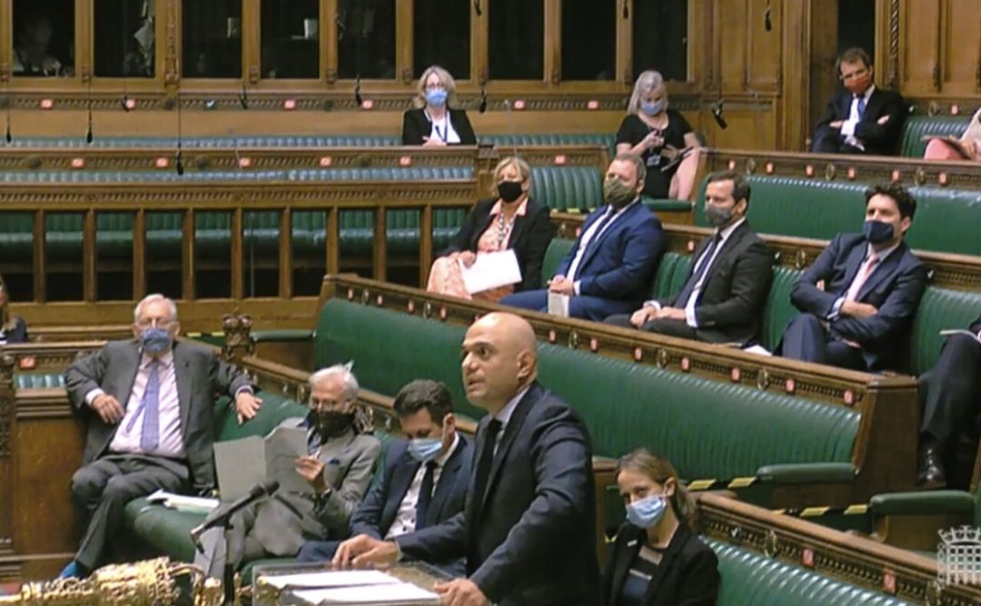 而同时在下议院发言的新上任卫生部长Sajid Javid表示:“人们将学着与新冠病毒共存 / learning to live with Covid。”