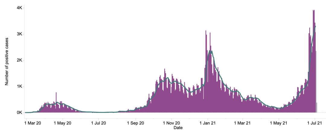 英国日增确诊案例趋势图