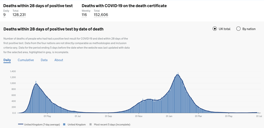 英国目前新增死亡保持稳定|信息来源BBC News