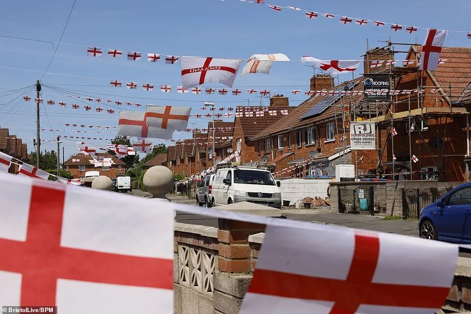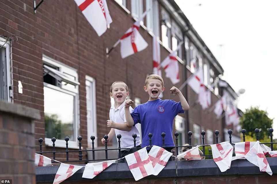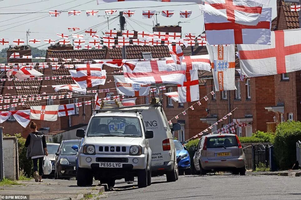 与此同时,英格兰各地的球迷已经用同样的英格兰圣乔治旗帜和三狮军团主题的装饰品来装点城市的街道,为这场55年以来最重要的赛事加油打气。