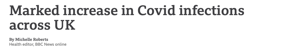 英国国家统计局(ONS)数据显示,英国正在经历新的Covid感染的明显增长。英国医学领袖们对此警告说,随着病例“急剧上升”,英国的新冠情况在好转之前会变得更糟。