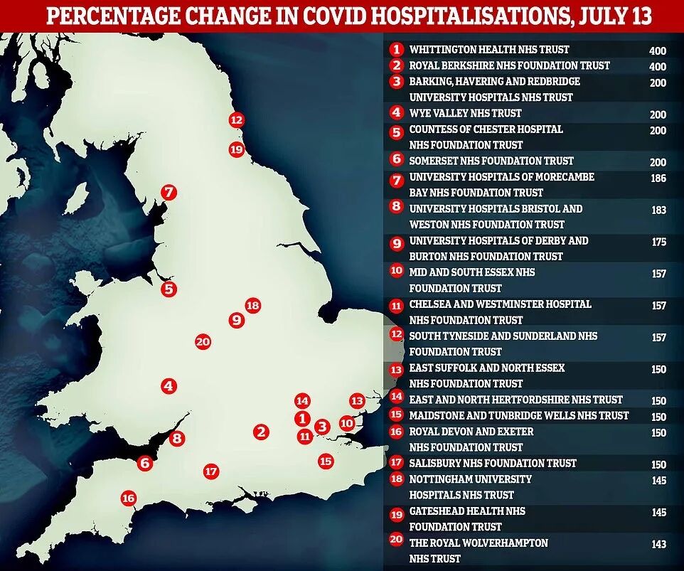 Jeremy Hunt先生补充说:医院目前的新冠病人每两周就会增加一倍。这意味着到8月底,我们将迎来10,000名新冠住院病患,这比去年这个时候高出约20倍,是一个非常严重的状况。