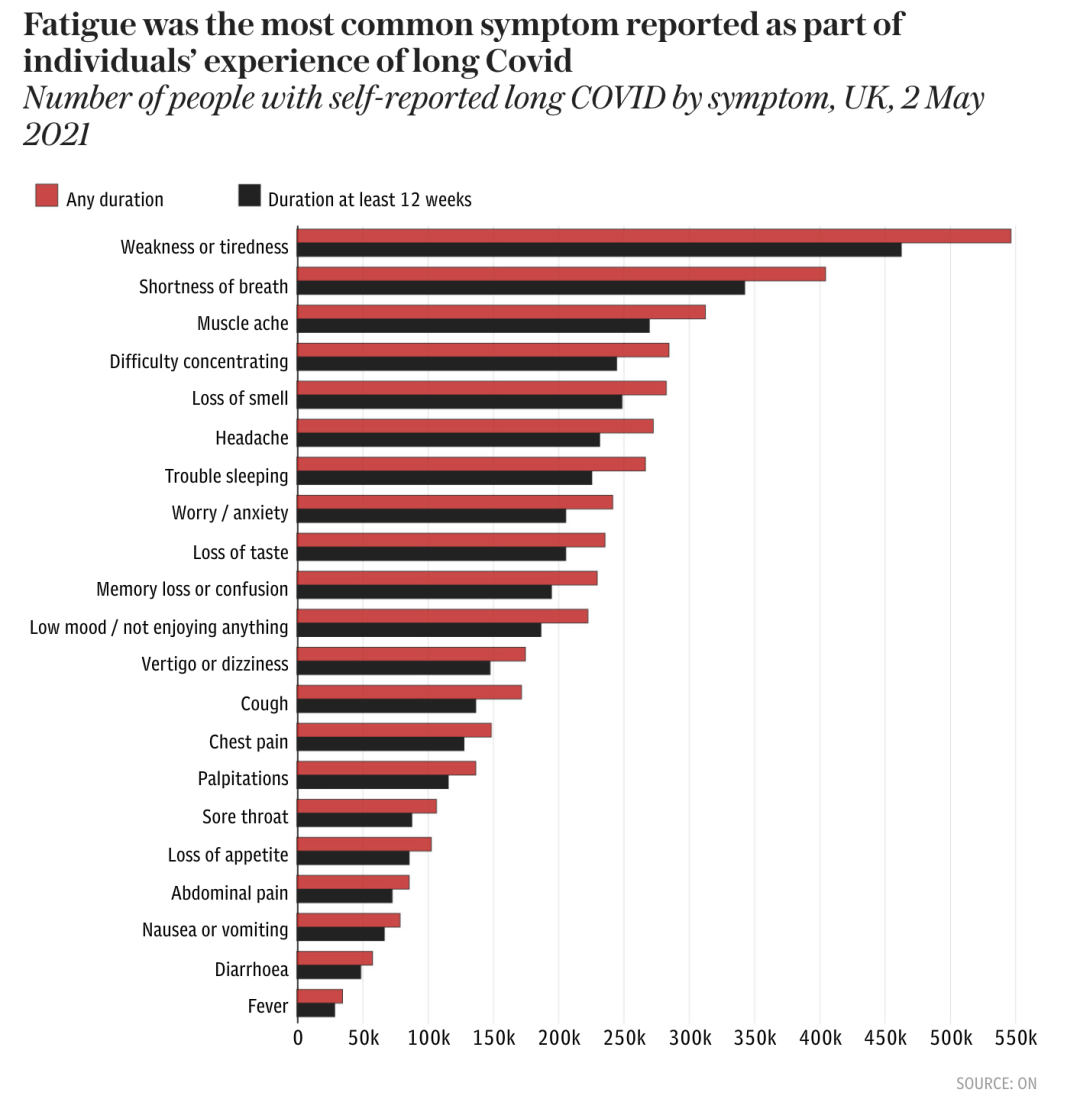 英国国家统计局ONS的最新数据显示,超过40万人遭受了超过12个月的长期新冠症状。