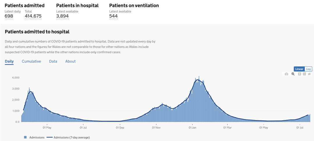 就整个英格兰而言,现在有3,813名新冠患者住院,这是3月24日以来的最高数字。