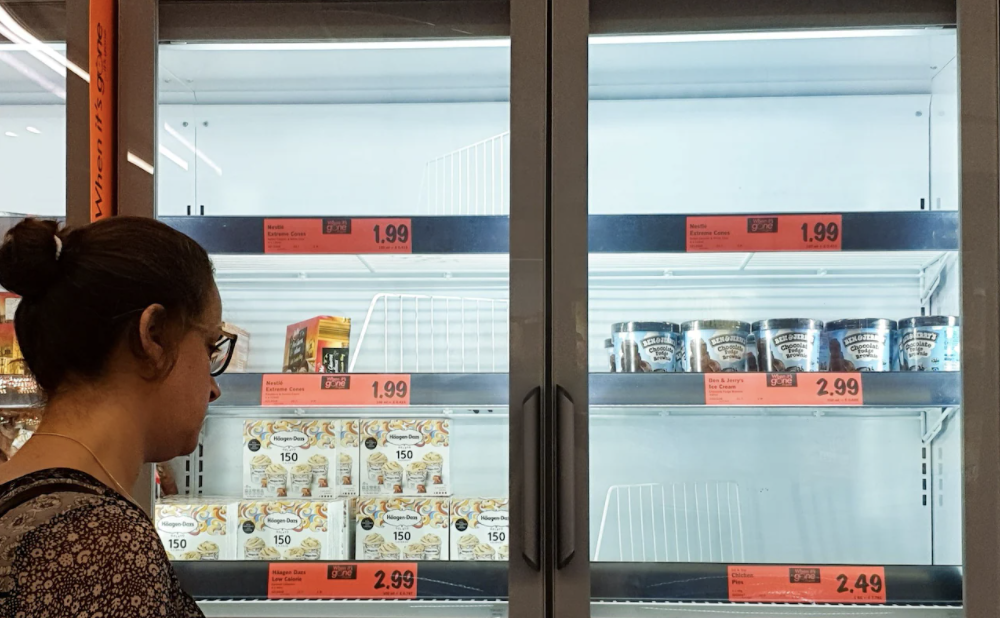 7月21日(周三),媒体报道了英国多个地段的Tesco、ASDA、Sainsbury's等超市的多个货架被抢空,当地也有很多购物者抱怨他们买不到水、卷纸、芝士、速冻食品等生活必须品。