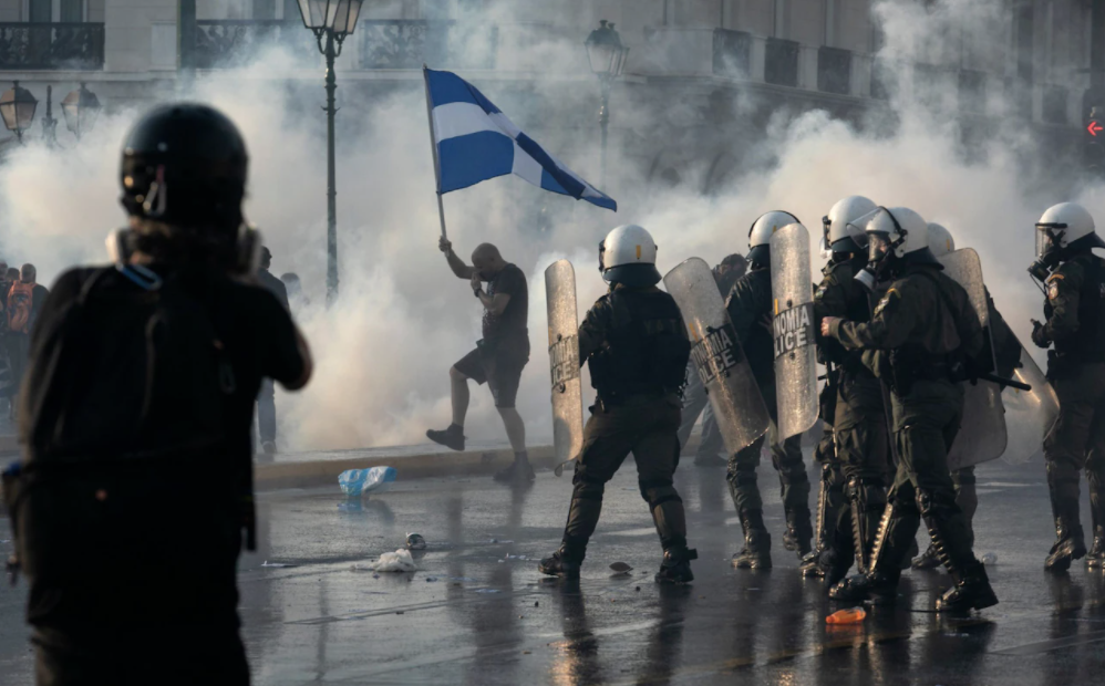 这一次,希腊警方与抗议者发生冲突:警方在雅典发射了催泪瓦斯和水炮以驱散抗议新冠疫苗接种的人群。