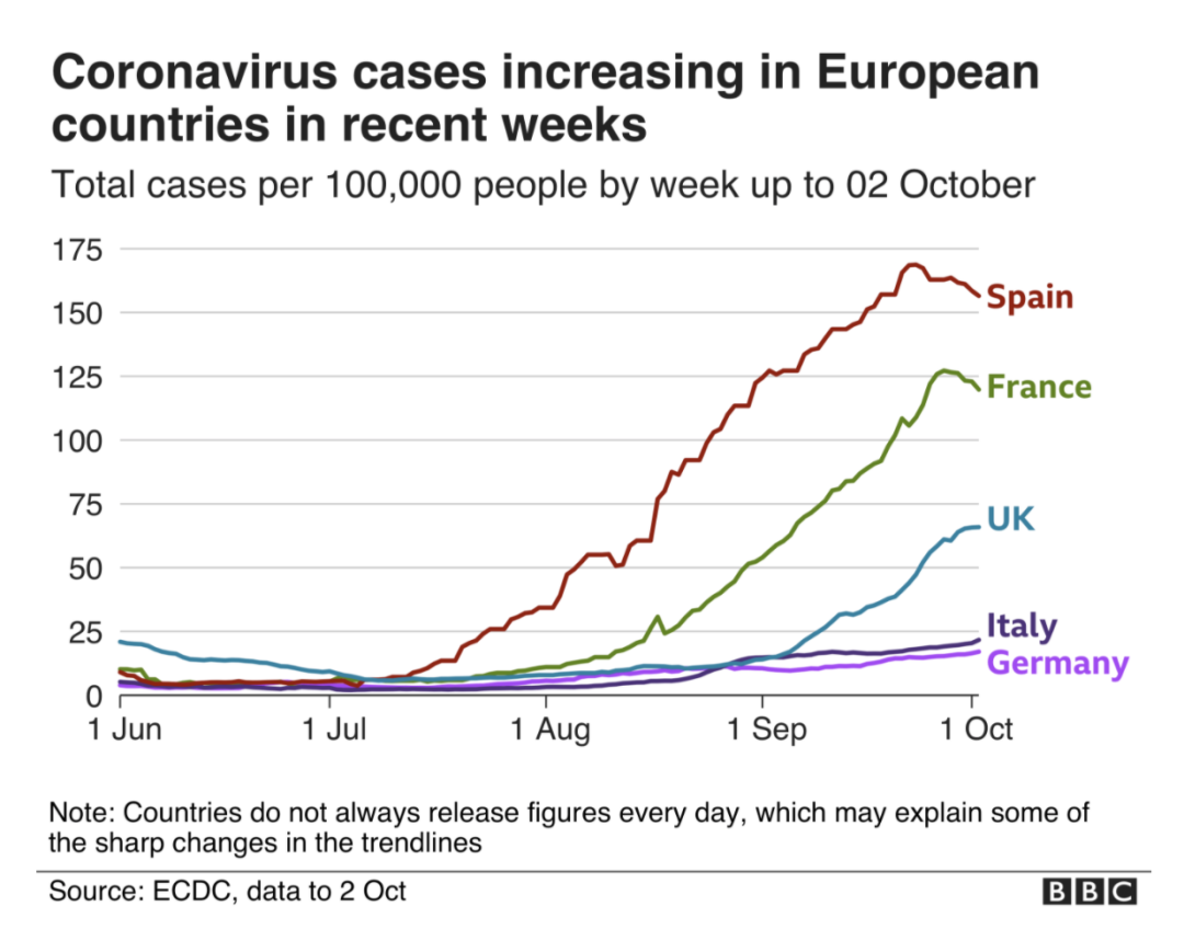 截至10月3日(周六),自英国大学开学以来,在校学生和教职工中发现了2,600例新冠确诊案例。目前参与隔离的在校人数超过5,000人。