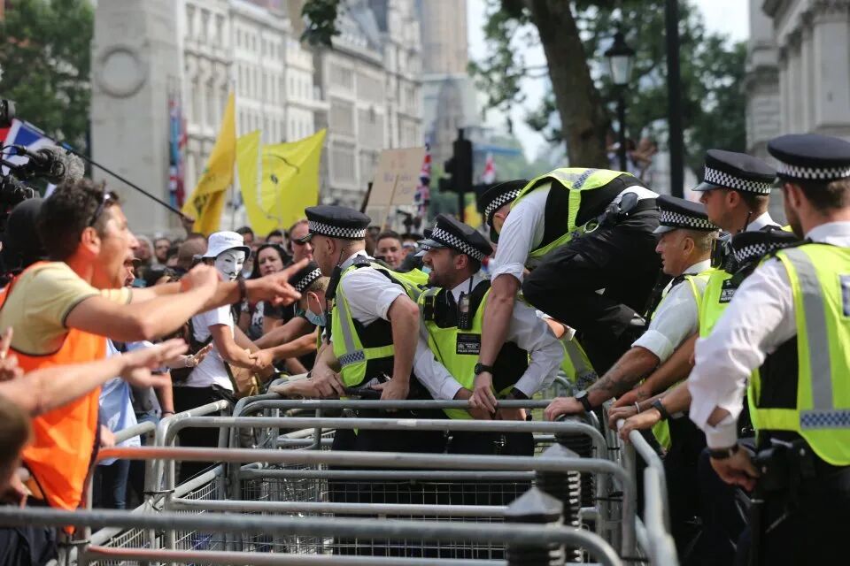 这些示威者在游行当日向警察投掷了瓶子,并高呼”警察可耻“和”逮捕Boris Johnson“的口号。示威活动从议会广场蔓延到公路上,一直到威斯敏斯特宫的大门。