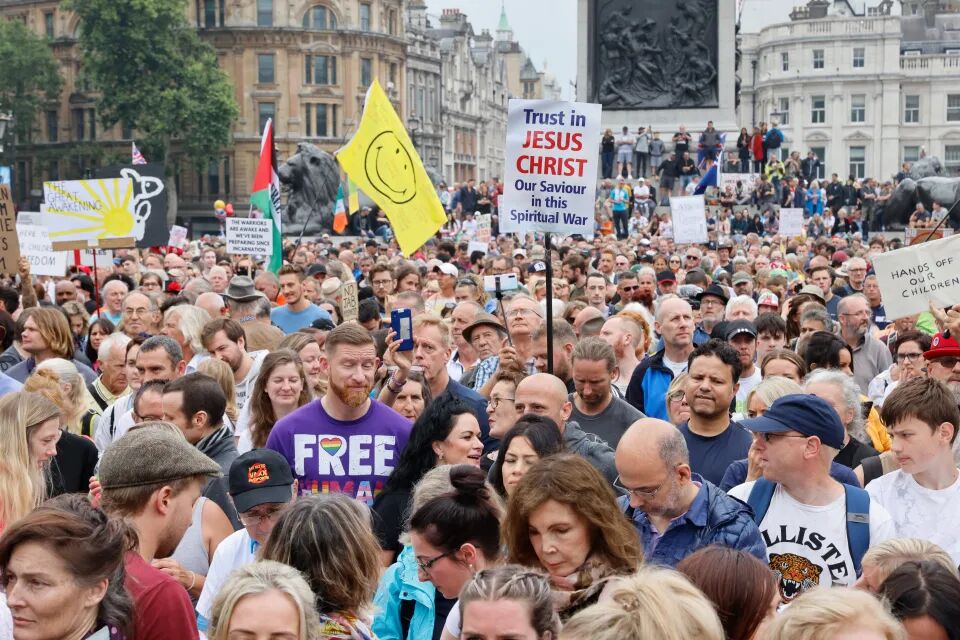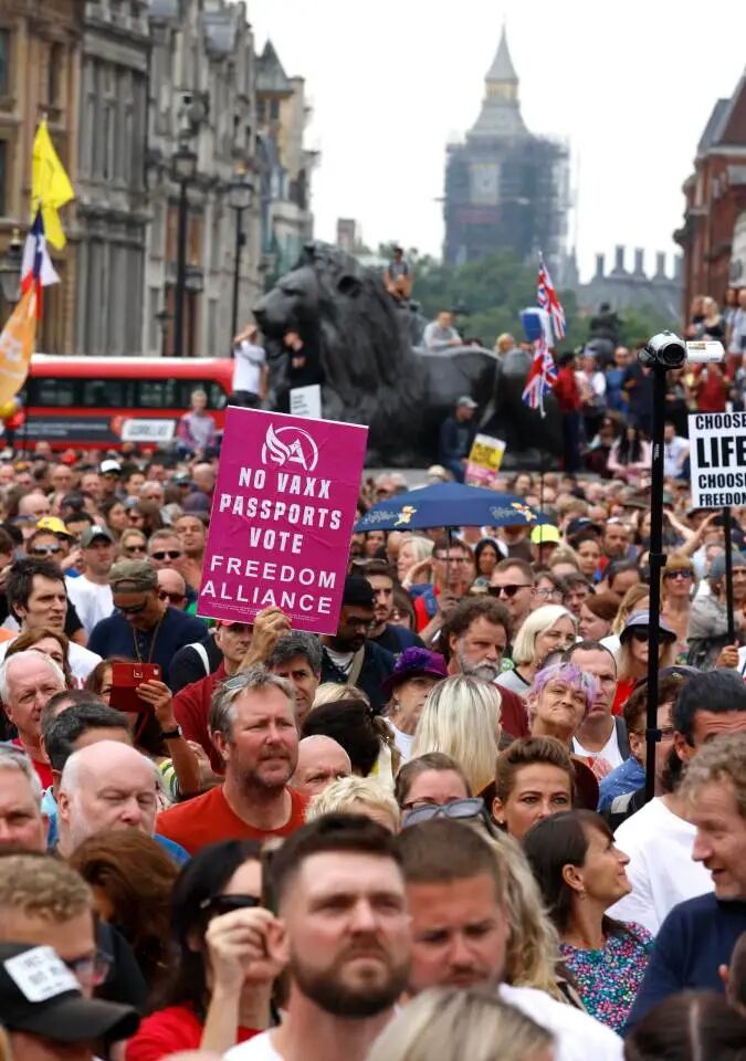 尽管英格兰已经取消了相关的封锁规定,但早前伦敦也出现大量反封锁者高举反疫苗和反警察的标志涌向市中心。