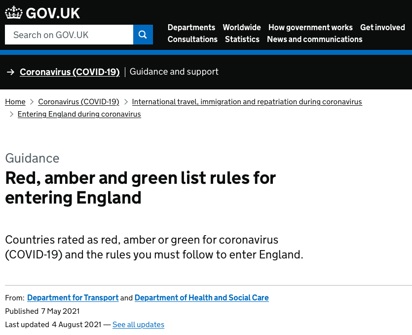 英国交通部已经列出了政府最新的新冠交通灯旅行名单,完成疫苗接种和18岁以下的从法国抵达英国的旅客将不再需要隔离,而印度将从红色名单上移出。