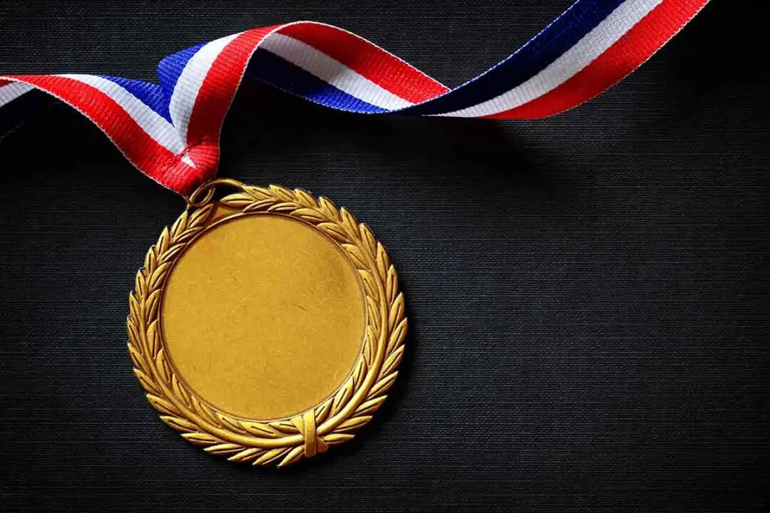 挥舞奖牌在空中结果啪嗒掉进湖里