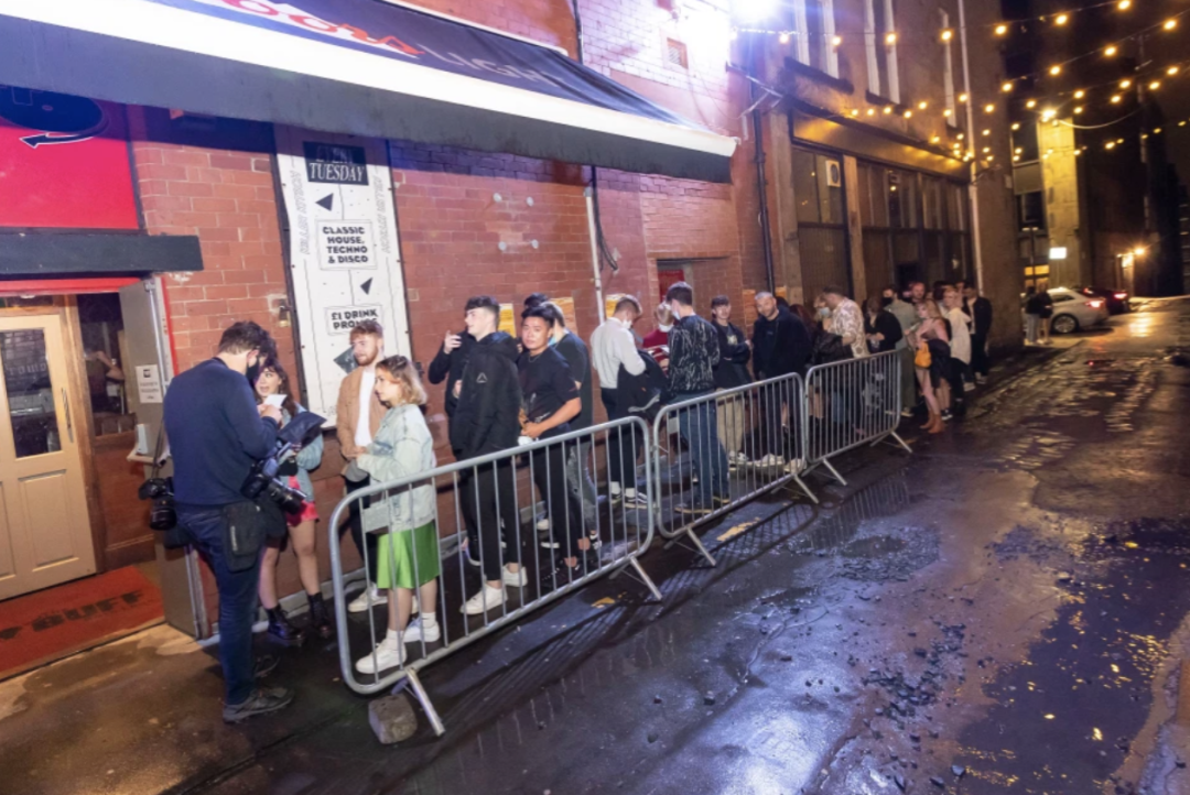 苏格兰的许多夜店自2020年3月以来首次连夜开门,有成百上千人在苏格兰各地的夜店排队等候午夜重新开放。
