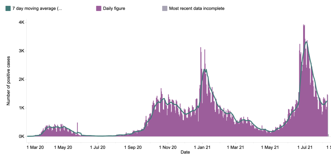 英国日增确诊案例趋势图