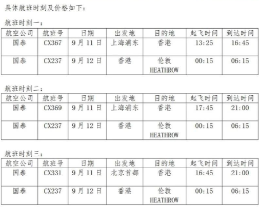 继前两日INTO教育集团确定了多个留学生包机航线,且机票火速售尽后,8月14日,该集团再次加开9月11日上海/北京出发,中转香港至伦敦的国泰航空包机行程。