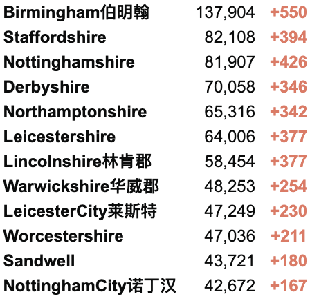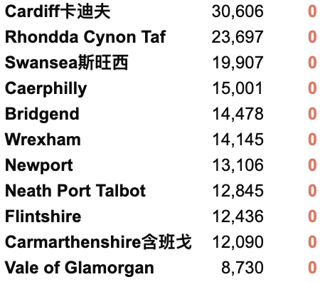英国疫情实时地图 / 城区具体数据
