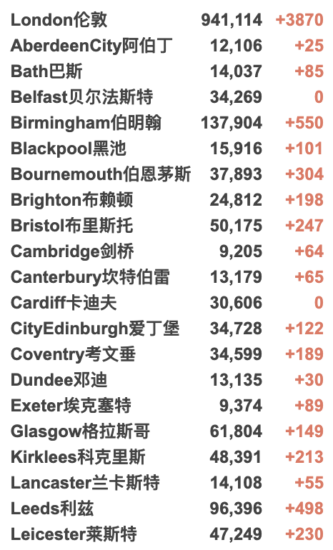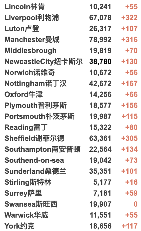 英国大学包机更新 / 城市疫情具体数据
