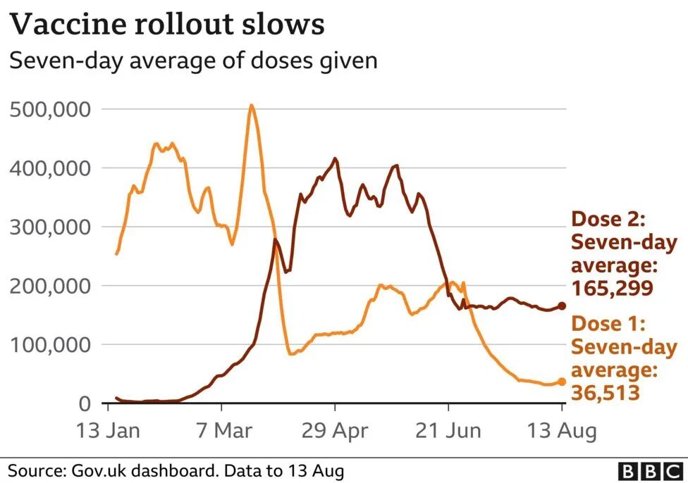 英国疫苗接种速度下降 | 图片来源gov.uk:BBC
