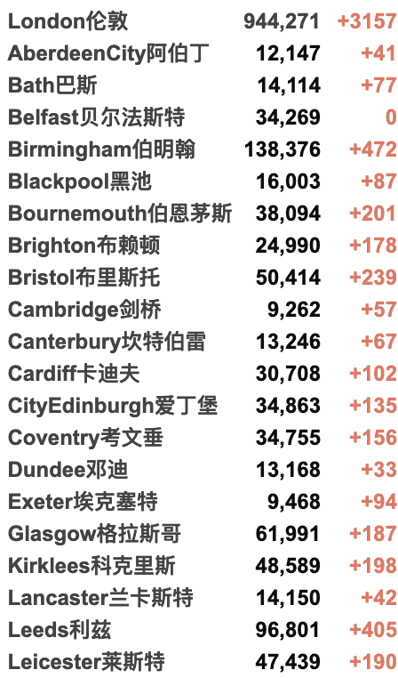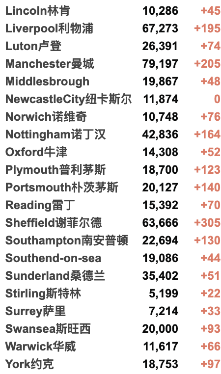 英国大学包机更新 / 城市疫情具体数据