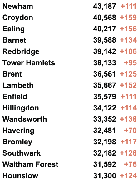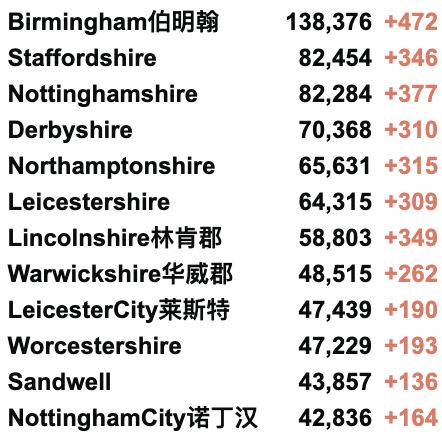 英国疫情实时地图 / 城区具体数据