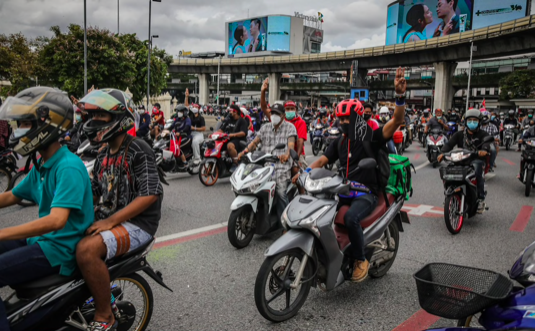 数千名抗议者8月15日聚集在曼谷市中心,要求泰国总理因其对新冠病毒疫情的“失败处理”辞职。这是全国各地举行的许多流动集会之一,以表达对总理巴育·詹欧差的愤怒。