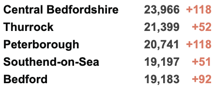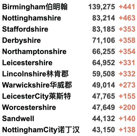 英国疫情实时地图 / 城区具体数据
