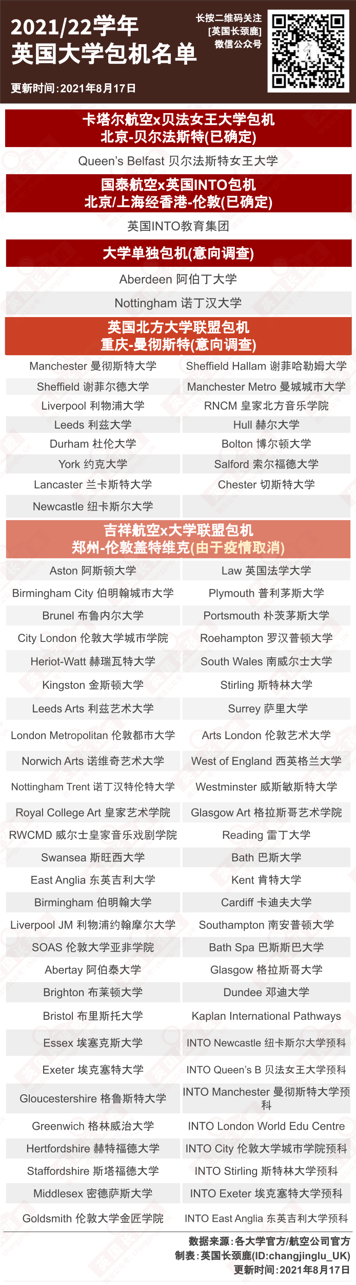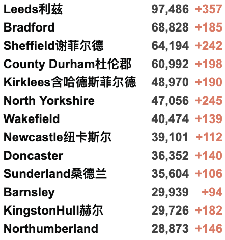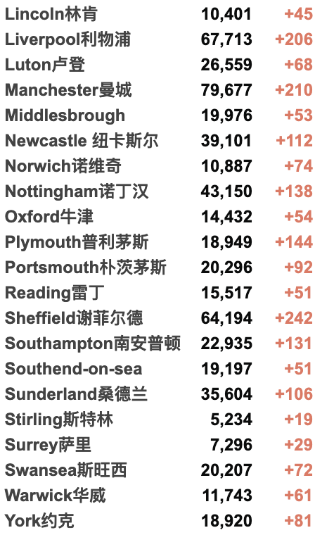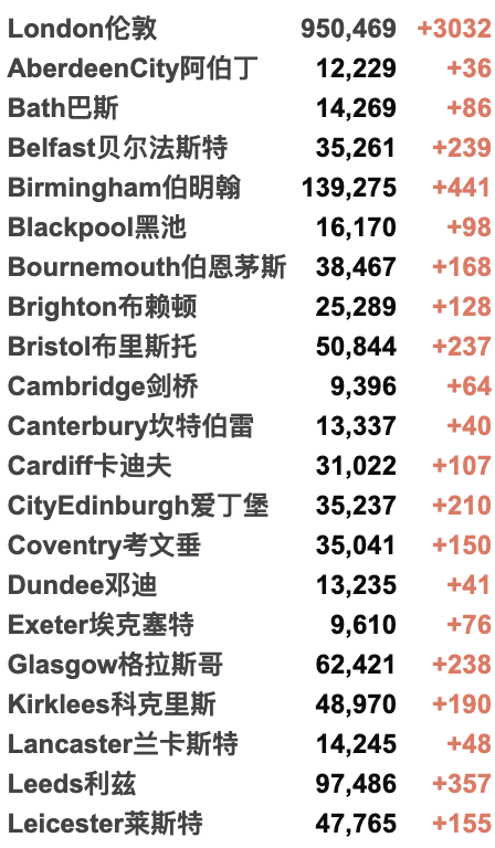 英国大学包机更新 / 城市疫情具体数据
