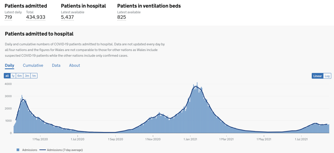 8月17日数据:目前住院的确诊新冠患者5,437人,累计住院新冠患者总数为434,933(+719)。
