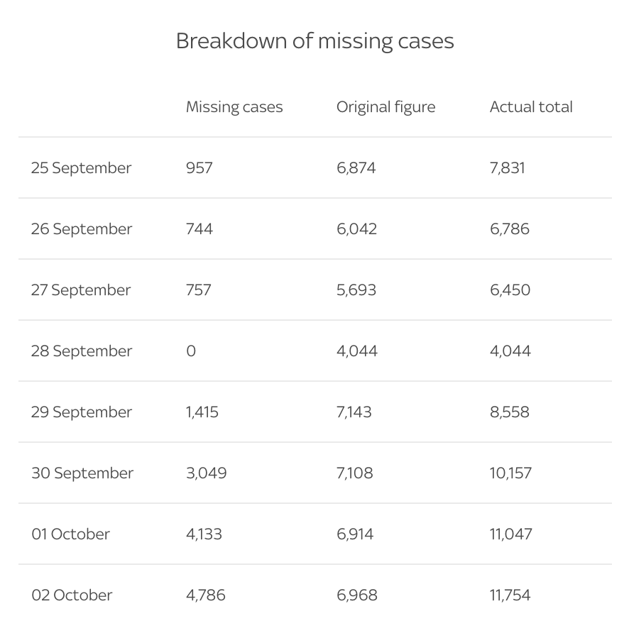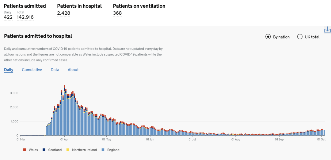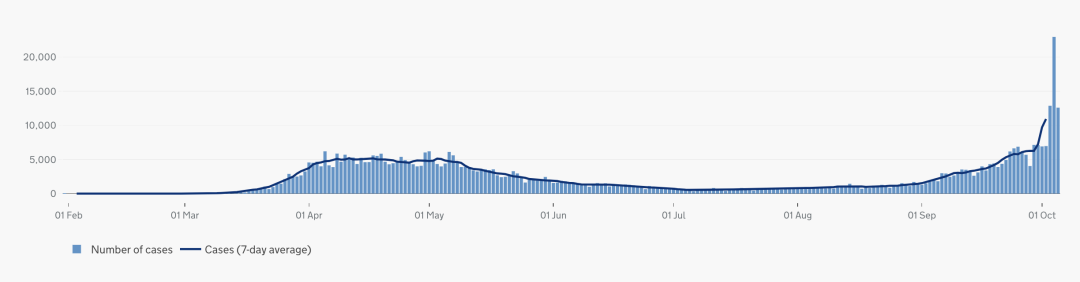 其中9月30日、10月1日以及2日更是分别遗漏了高达3,049例、4,133例以及4,786例。因此,英国早于9月30日新增确诊就破万了。