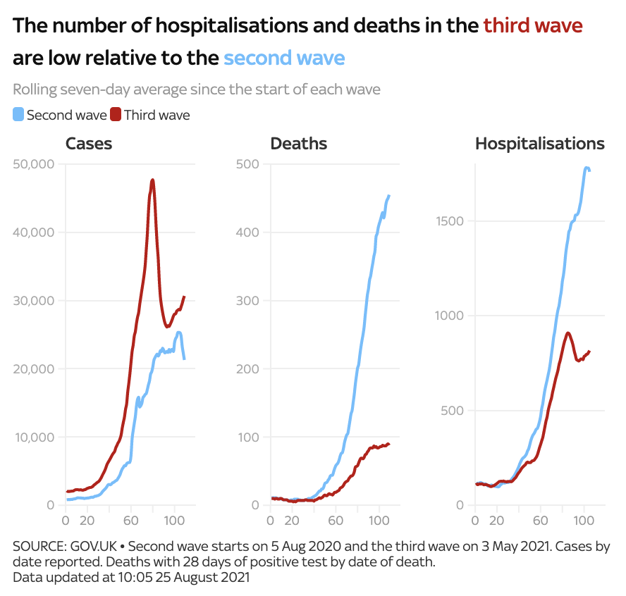 虽然证据显示,疫苗可以降低甚至防止重症率和死亡率,但随着我们逐渐进入秋冬呼吸道疾病爆发季,如果我们要防止病例的激增和未来的封锁,英国需要随时保持人口中高度的免疫程度。