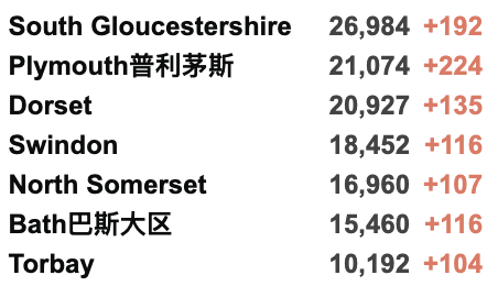 根据英格兰公共卫生部PHE的新冠监测报告显示,西南地区的感染率最高:在截至8月22日的一周里,每10万人中确诊481.7例,比前一周的351.8例有大幅上升。相比之下,伦敦的感染率最低,从每10万人277.6例下降至每10万人247.3例。