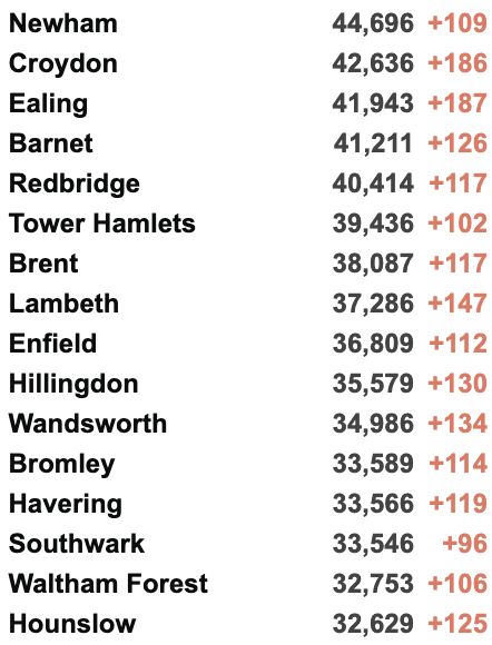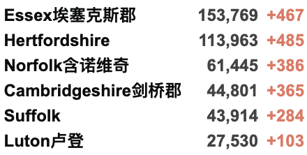 英国疫情实时地图 / 城区具体数据